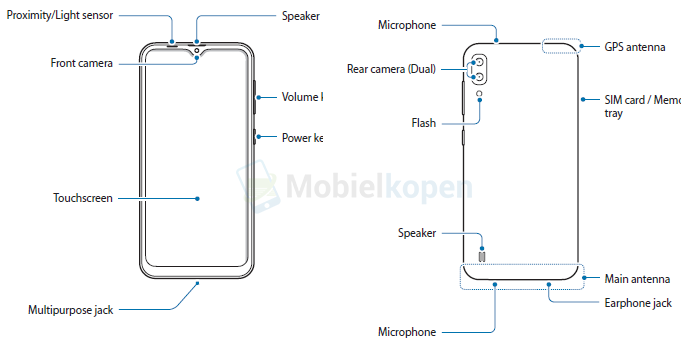 Il modello Galaxy M20 avrà uno schermo LCD da 6,3 pollici e con una risoluzione full HD+ (2340×1080 pixel). Sotto la scocca troviamo un processore octa core Exynos 7885, in coppia con una memoria RAM di 3 GB e uno spazio di archiviazione da 32 o 64 GB espandibili con schede microSD.