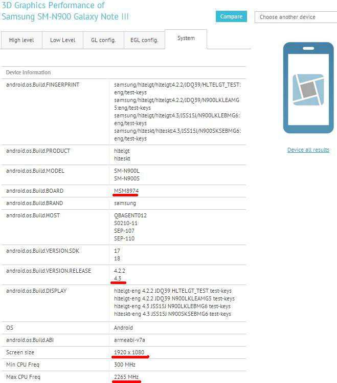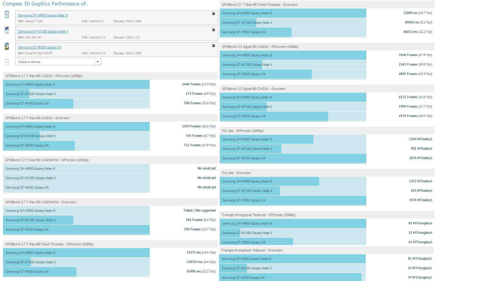 Dopo le diverse notizie, veritiere o di speculazione, sul Galaxy Note 3 e sui suoi eventuali display, arrivano alcuni scatti dal sito GFXBench che mostrano alcune caratteristiche hardware del Galaxy Note 3 apparso in 2 varianti.