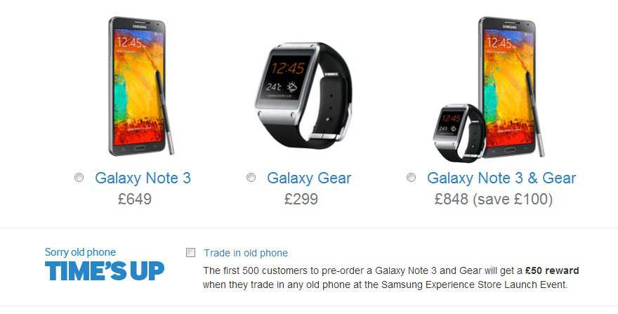 Arrivano i premi prezzi ufficiali per i tanto attesi Samsung Galaxy Note 3 e Galaxy Gear. Sono stati infatti rilasciati i prezzi ufficiali da parte di Samsung riguardanti il mercato UK che indicano un costo di 649£ per il Galaxy Note 3, 299£ per il Galaxy Gear ed un prezzo di 848£ per il bundle Galaxy Note 3 e Galaxy Gear.