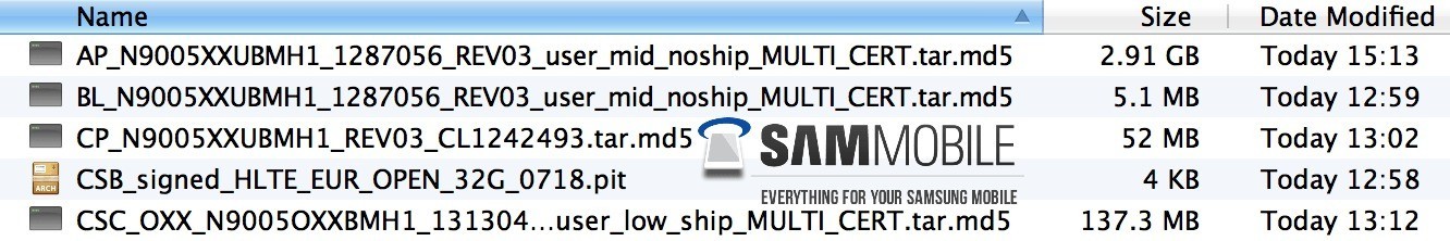 Da pochi minuti è disponibile per il download il firmware di test con codice N9005XXUBMH1 per il Samsung Galaxy Note 3 versione LTE (SM-N9005), che ovviamente non è possibile installare sul dispositivo in quanto non ancora disponibile sul mercato, ma potrà sicuramente essere molto utile agli sviluppatori indipendenti (la grande community XDA ad esempio) per cominciare a preparare le prime custom rom così come estrapolare per poi effettuare il porting delle varie applicazioni su altri dispositivi Android.