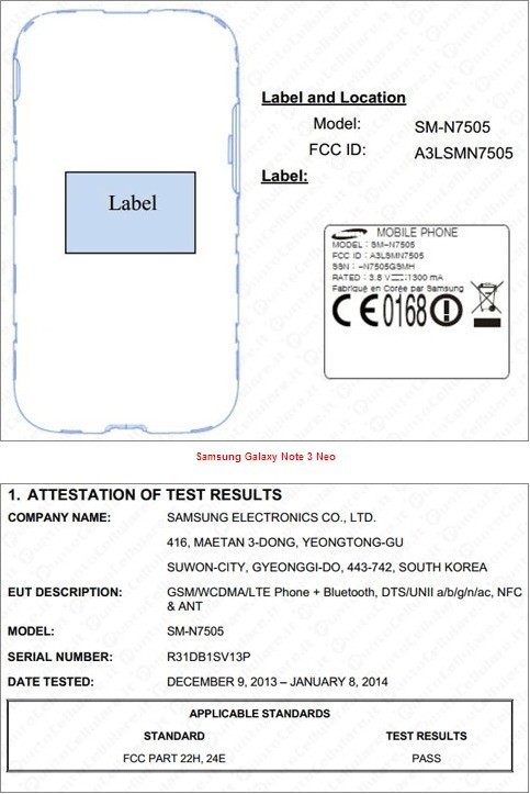 Ci siamo quasi, arriva la certificazione da parte della Federal Communications Commission americana per il Galaxy Note 3 Neo che di fatto da il via libera alla commercializzazione che, a questo punto, potrebbe arrivare in qualsiasi momento. Sappiamo ormai tutto del nuovo phablet Samsung, e i test della FCC confermano i precedenti rumors sulle use specifiche tecniche.