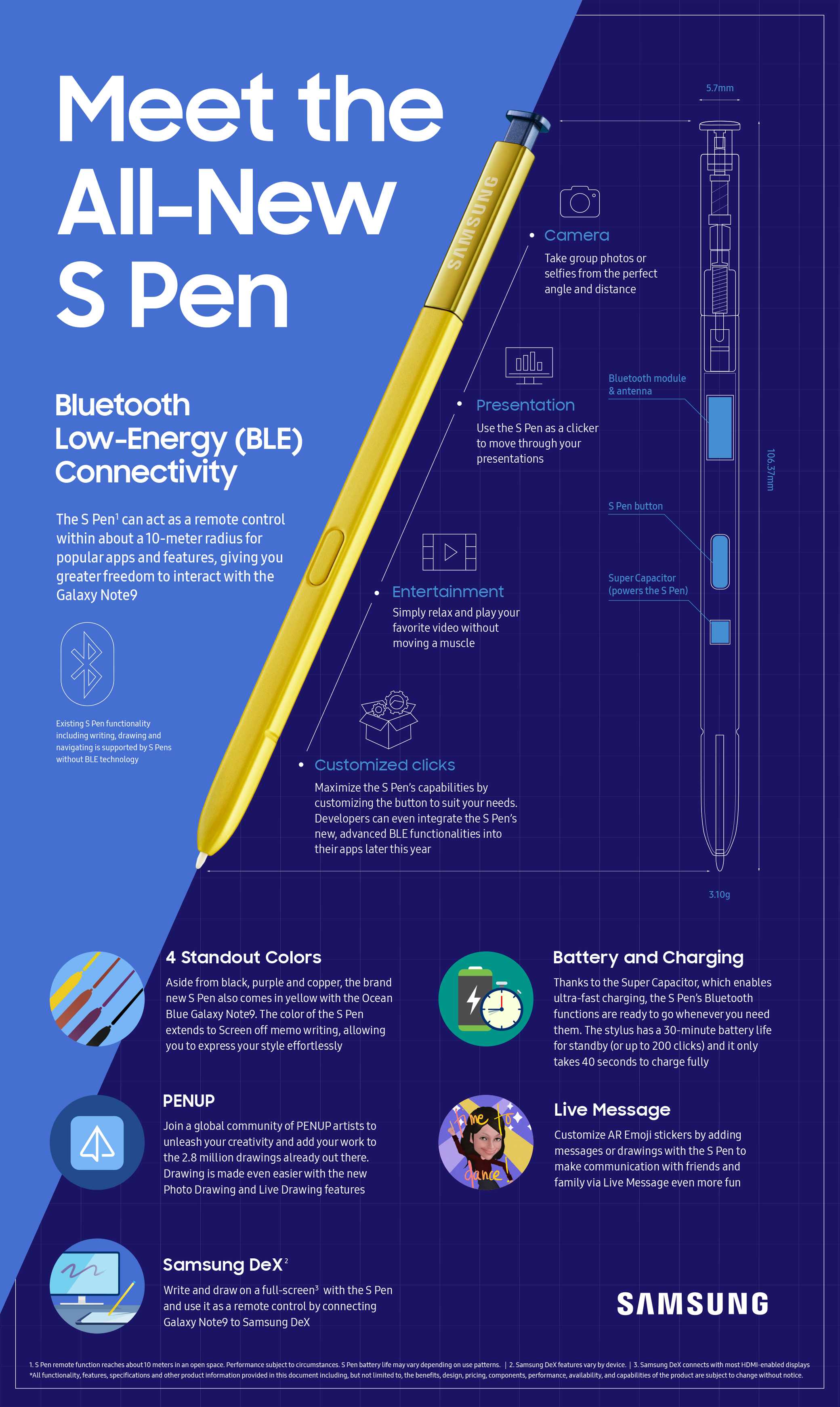 Per chi non ama leggere ma riesce a comprendere meglio con le immagini, Samsung ha messo a disposizione una serie di infografiche che vi diranno tutto, ma proprio tutto del Galaxy Note 9.