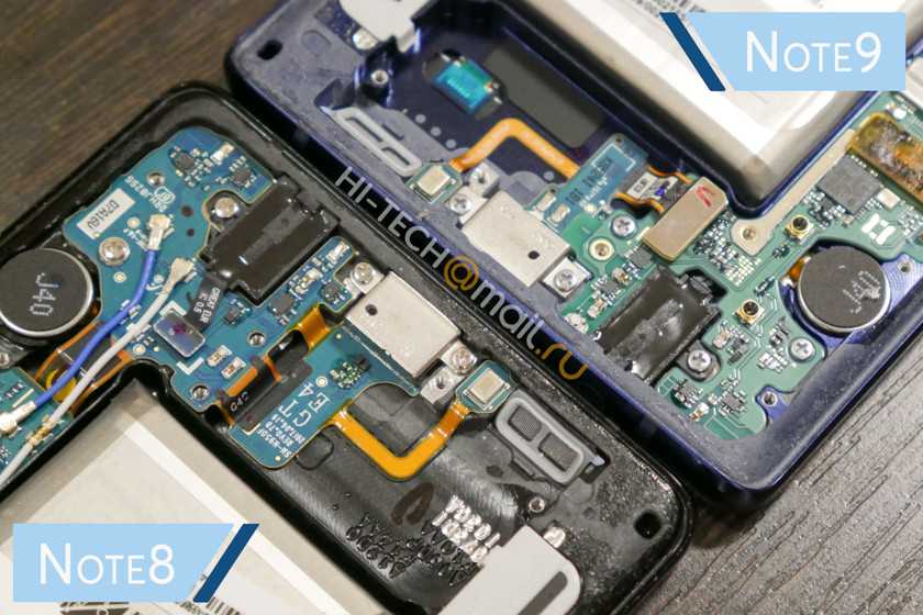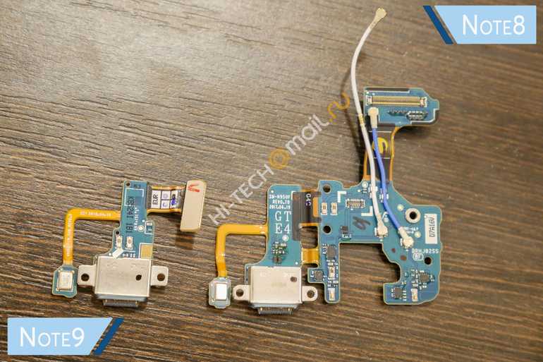 Guardando alla eventuale sostituzione di alcuni elementi, la sostituzione del connettore USB Type C (eventualmente danneggiato), nel Galaxy Note 9 non è solo più facile grazie al fissaggio premuroso alla scheda, ma anche più economica, sulla scheda ci sono molti meno elementi. L’altoparlante in Note 9 è di dimensioni maggiori, questo dovrebbe influire sulla qualità del suono e, molto probabilmente, sul livello di protezione dall’acqua.