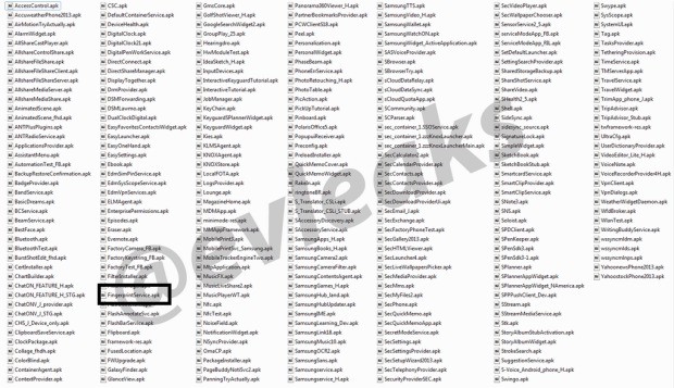 Una della applicazioni infatti si chiama FingerprintService.apk e sembra proprio destinata alla gestione del riconoscimento delle impronte digitali tramite lettore integrato nel dispositivo! In realtà si erano già notati segni di sviluppo nel codice sorgente di Samsung e nello specifico all’interno della rom beta di Android Jelly Bean 4.2.2 per Galaxy S III, ma ora utilizzare un nome così specifico per un applicazione di sistema fa pensare proprio che sia giunto il momento del debutto per questa tecnologia in un dispositivo della famiglia Galaxy di Samsung, ma d’altra parte potrebbe essere ancora una fase di sviluppo che vedrà l’arrivo del lettore di impronte digitali solo a partire dal successore del Galaxy S4.