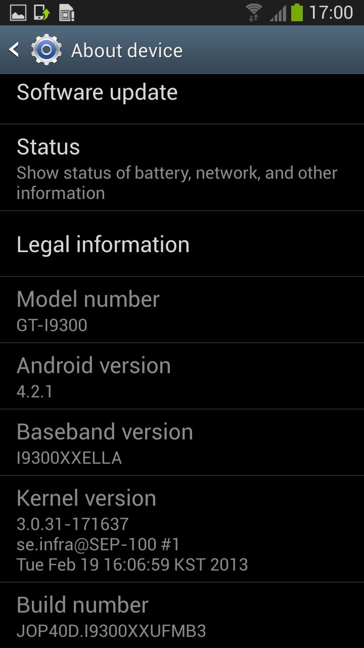 - PDA: I9300XXUFMB3