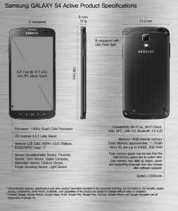 Avevamo già parlato del Galaxy S4 Active ed ora arriva l’ufficialità del primo device rugged della casa Coreana conforme allo standard di certificazione IP67 e quindi resistente ad acqua e polvere e che permette di tenere immerso il dispositivo fino ad un metro di profondità per circa 30 minuti.