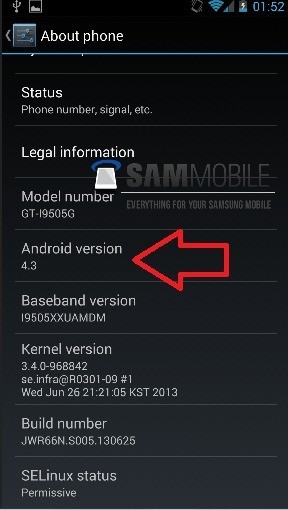 La versione esatta di questa rom basata su Android 4.3 è “JWR66N.S005.130625” numeri che internamente a Samsung indicano con “JWR66N” la versione di Android e con “S005.130625″ una rom interna realizzata a solo scopo di test.