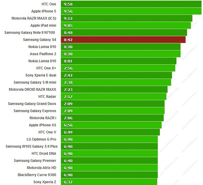 In tutti i test sono emersi ottimi risultati per il Galaxy S4, sicuramente in media con gli avversari top di gamma del momento, HTC One e Apple iPhone 5.