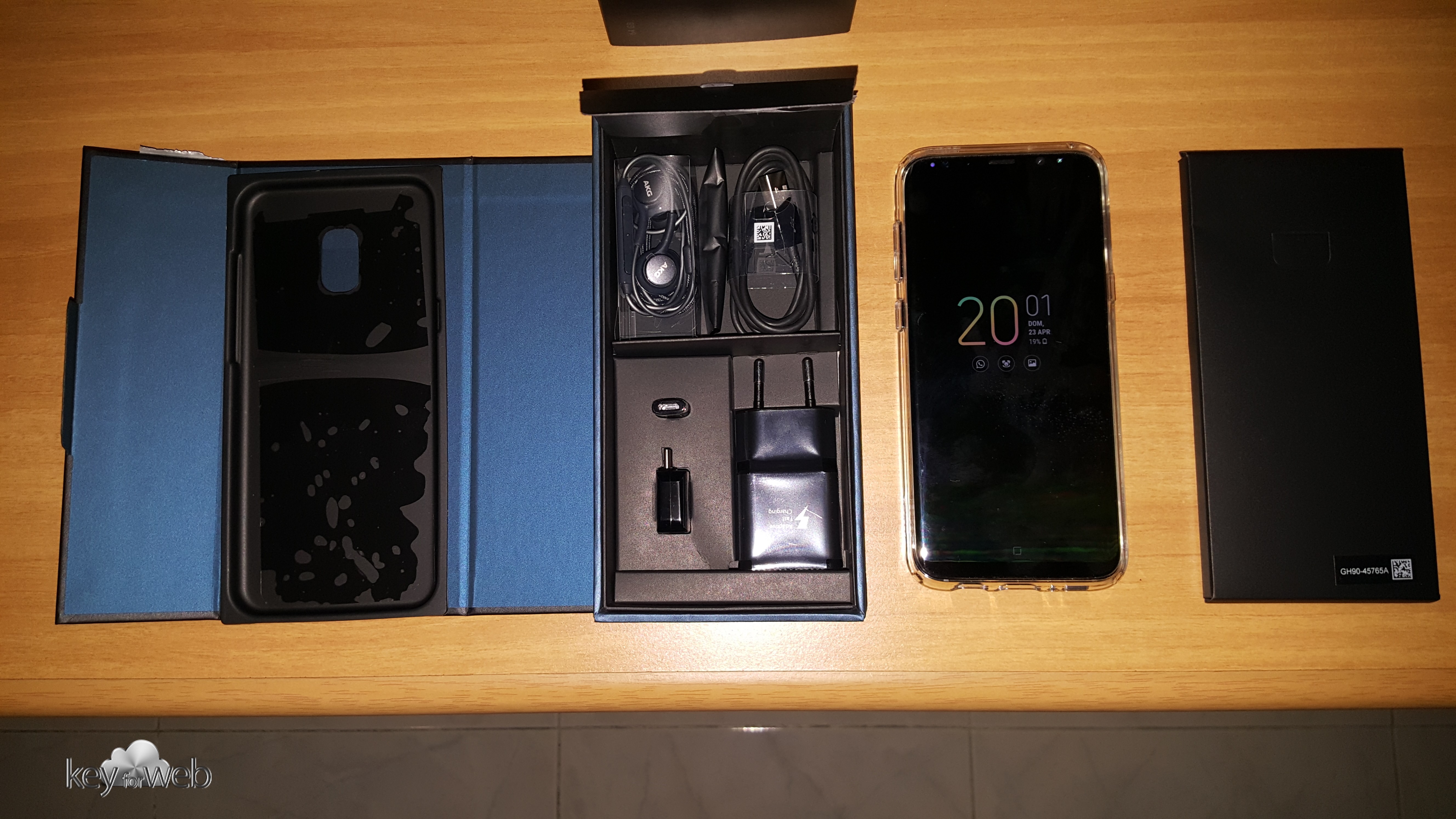 La confezione di vendita di Samsung Galaxy S8+ non è troppo grande, forse è anche questo a stupire perché si pensa “come fa un 6,2” di schermo a stare li dentro? Mi avranno di certo mandato la versione più piccola”. Invece no, eccolo il gigante buono (davvero buono in ogni suo minimo aspetto). All’interno della confezione troviamo un alimentatore per la ricarica rapida 9V/2A, un cavo USB/USB-C, un adattatore da micro USB a USB-C e un adattatore OTG. Non dimentichiamo poi i nuovi auricolari in-ear di AKG che sono davvero di ottima qualità.