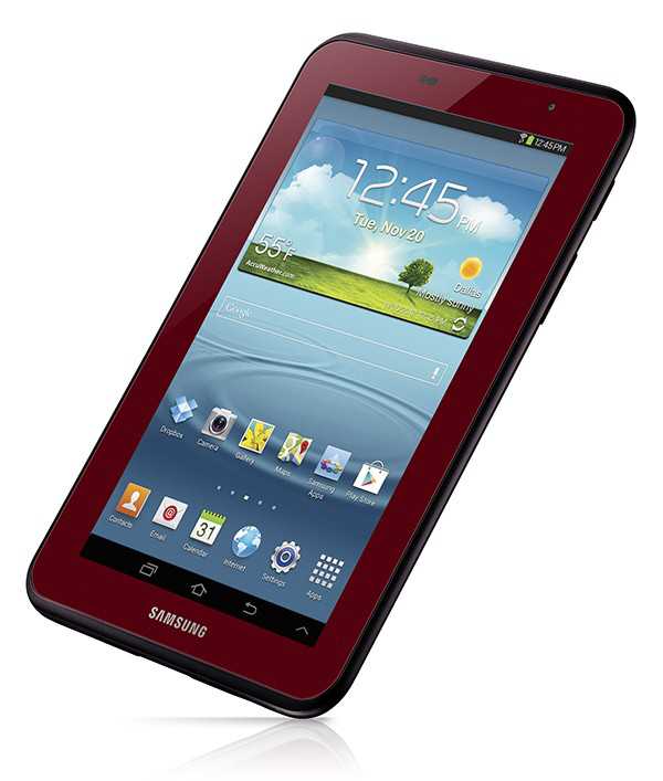 Samsung ha annunciato che il Galaxy Tab 2 7.0 è disponibile in rosso granata. Il prezzo dovrebbe rimanere sui 219 $ e viene fornito con custodia gratuita sempre in coordinato rosso granata . Avrà il sistema operativo Android 4.1.2 Jelly Bean, un processore dual-core e anche una porta IR, oltre alla connettività Wi-fi. Questa versione limitata è disponibile, tra gli altri venditori anche da Walmart, Amazon.com, Office Depot, Fry, Tiger Direct e Toys R Us.