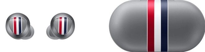 - Galaxy Buds+ in colorazione grigia con strisce colorate Thom Browne