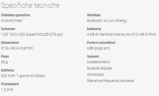 A corredo del dispositivo, troviamo poi il nuovo sistema operativo Android Wear, dotato di comandi vocali “OK Google” .