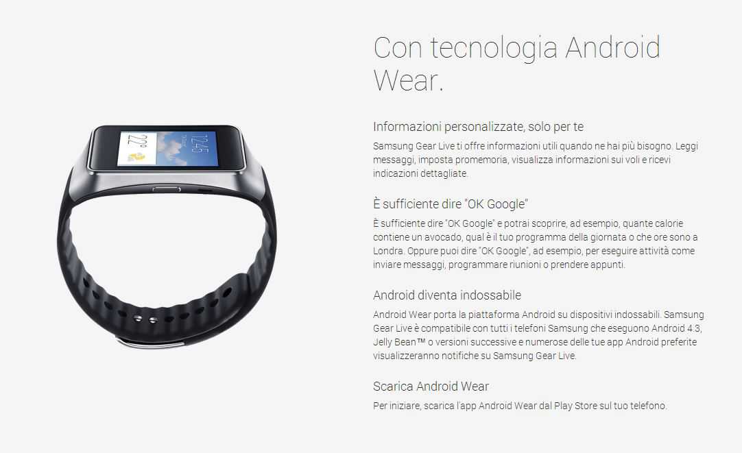Il Gear Live è compatibile con tutti i telefoni Samsung che eseguono Android 4.3, Jelly Bean o versioni successive. Di seguito le immagini del dispositivo.