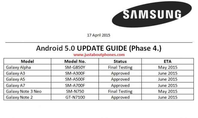 Nel mese prossimo  è il turno di Galaxy Alpha e Galaxy Note 3 Neo, rispettivamente per i modelli  SM-G805Y e SM-N750. Fate attenzione al codice, che in questo caso indica il mercato asiatico, ovvio pensare che dopo questo rilascio, ci siano speranze anche per i dispositivi di casa nostra che come di consuetudine rimangono sempre un pochino indietro. Successivamente toccherà al Galaxy Note 2 (GT-N7100) e a tutta la gamma Galaxy A: A3 (SM-A300F), A5 (SM-A500F) e A7 (SM-A700F). Attendiamo fiduciosi dunque![trovaprezzi prodotto=”Galaxy A7″] e [trovaprezzi prodotto=”Samsung Galaxy A5″]