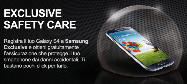 Per ricevere il voucher sarà sufficiente registrare il proprio Galaxy S4 nel sito Samsung Exclusive che permetterà anche di aderire alla promozione Samsung che prevede un assicurazione esclusiva che coprirà gratuitamente i danni accidentali al vostro Galaxy S4 fino ad un valore di 250 euro!