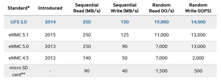 Il nuovo chip Samsung 128GB eMMC 5.0 offrirà una velocità di lettura sequenziale di 260 MB/s, mentre i dati casuali di lettura e scrittura raggiungeranno, rispettivamente 6.000 IOPS (operazioni di input/output al secondo) e 5.000 IOPS sufficienti per elaborare contenuti video ad alta definizione.