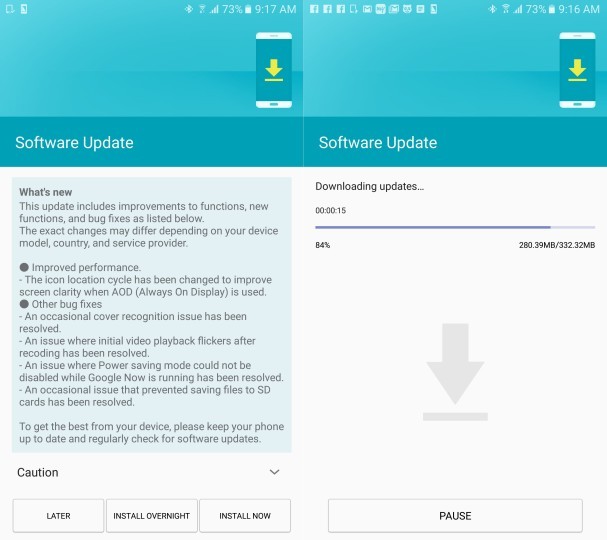 Samsung ha quindi posto mano in modo importante al software dei due smartphone di fascia alta del 2016, affinando ulteriormente le performance generali e sistemando alcuni frangenti precari. Spicca a tale stregua una sostituzione dell’icona posizione all’interno della modalità <<Always-On>> al fine di migliorarne la visibilità, mentre l’attenzione sembra esser stata dedicata alla correzione dei bug palesatisi in queste ultime settimane: changelog ufficiale alla mano, l’aggiornamento per Galaxy S7 e S7 Edge sistema la modalità di risparmio energetico (non funzionante in precedenza con Google Now attivo), archivia l’impossibilità di salvare file su memoria SD ed il tremore nei primi secondi di riproduzione dei video registrati con lo smartphone.