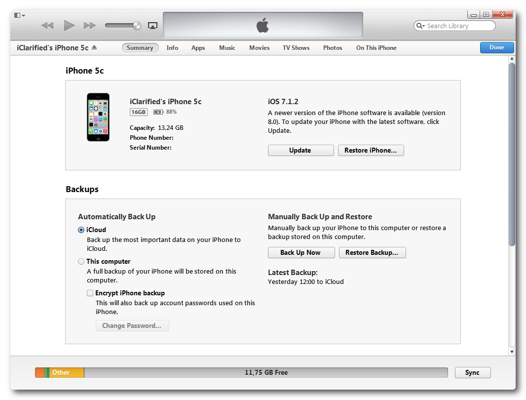 Se trovate maggiore comodità nell’aggiornare il vostro dispositivo attraverso iTunes ovviamente p anche possibile effettuare l’upgrade attraverso tale software. Basta semplicemente collegare il dispositivo al PC/Mac e procedere all’installazione in pochissimo tempo. Naturalmente i tempi di download dell’aggiornamento dipendono dalla velocità della vostra rete.