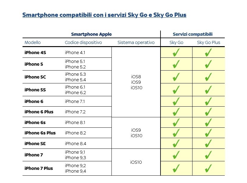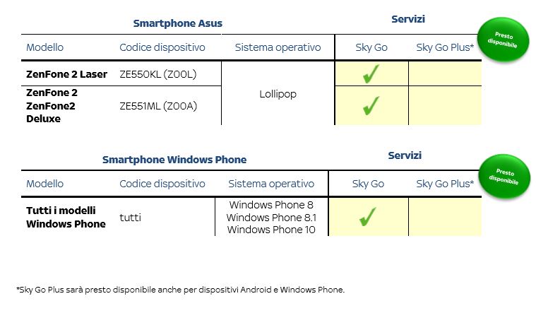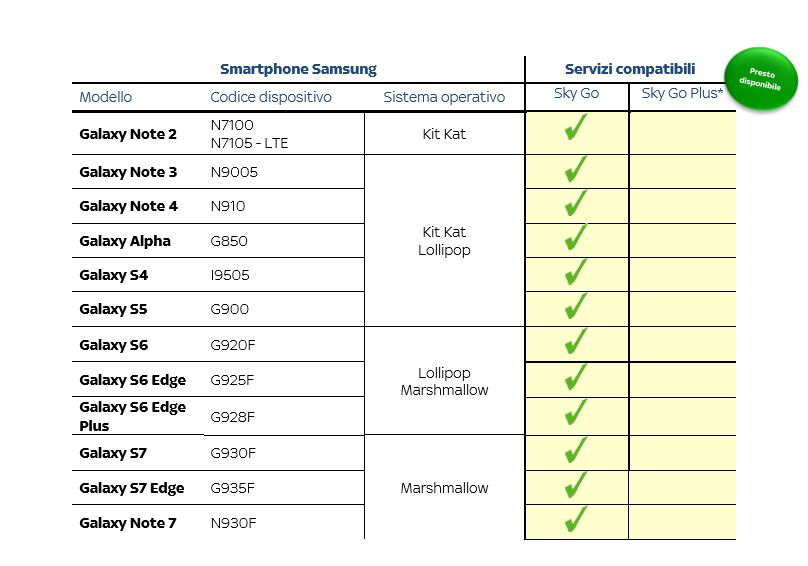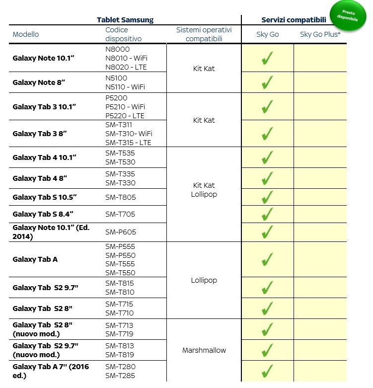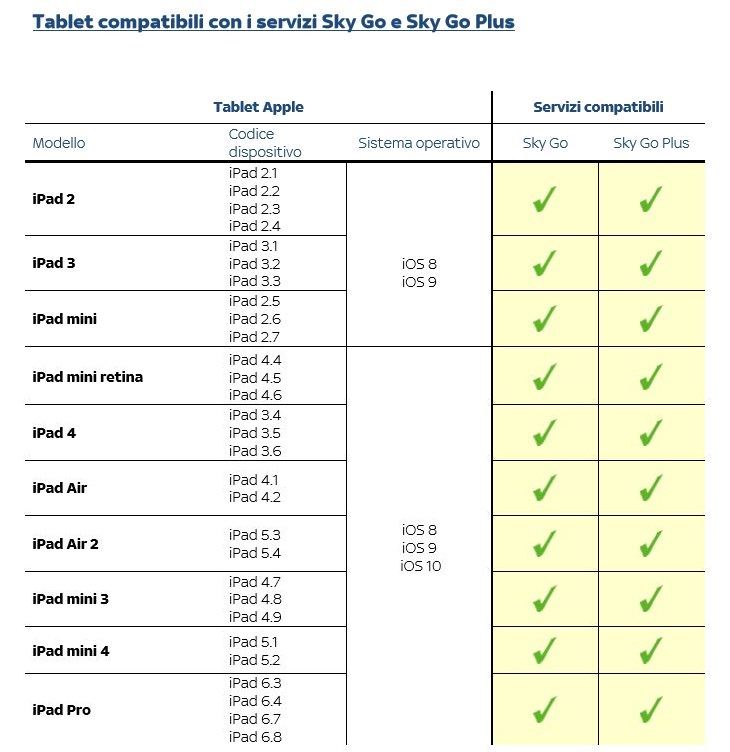 Ecco l’elenco dei device compatibili con la nuova app Sky Go Plus: