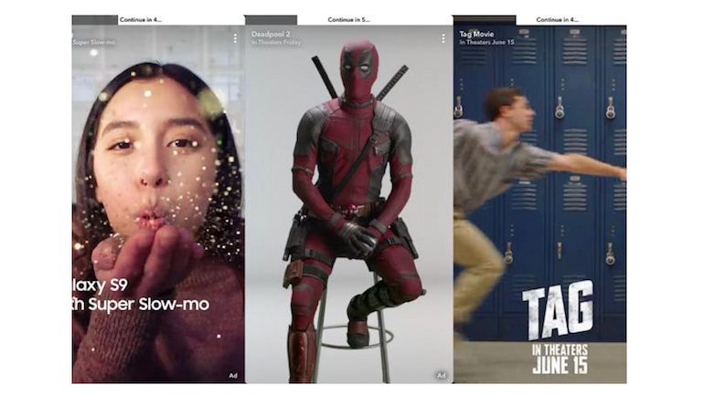 I primi annunci pubblicitari saranno incentrati alla sponsorizzazione di Deadpool 2, Snapple e il nuovo Galaxy S9. Prima di questa implementazione, l’intero business di Snapchat si basava su annunci ignorabili, un modello marketing che ha dimostrato di non essere sufficientemente efficace. Il primi annunci pubblicitari furono introdotti nel 2014, quando l’azienda aveva dichiarato di essere categoricamente contraria alla pubblicità forzata.