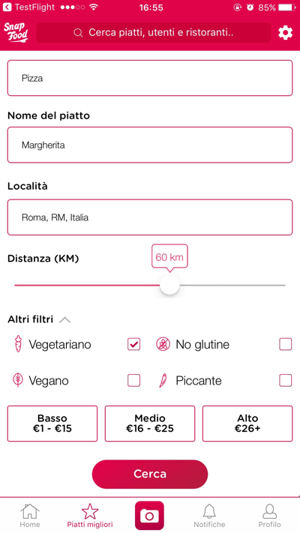SnapFood, il social che premia la qualità e il cibo, lancia la funzione di ricerca per piatti con ingredienti specifici. Da oggi gli utenti di SnapFood possono cercare anche piatti glutenfree, piatti green (vegeteriani e vegani) e piatti piccanti.