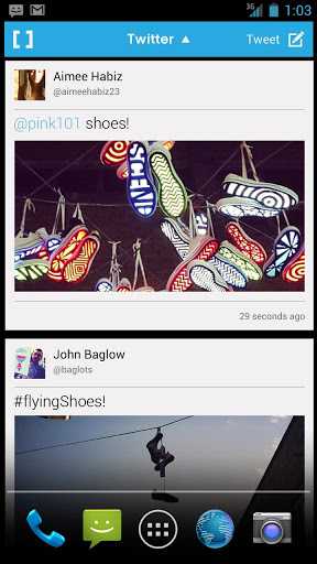 SO.HO permette di selezionare ovviamente la modalità di aggiornamento delle pagine sie per Twitter che Facebook e la visualizzazione dei due social network è veramente ben fatta e senza problemi anche se il launcher come detto è ancora in fase beta.