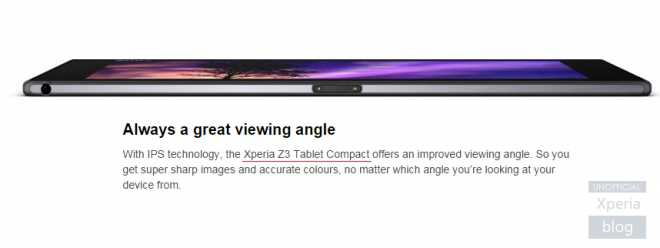In una pagina sul proprio sito ufficiale, per un immagine relativa all’attuale Xperia Z2 Tablet è stato infatti riportato il nome Xperia Z3 Tablet Compact, confermando quindi chiaramente come nome scelto per il nuovo tablet compatto della serie Xperia di Sony.