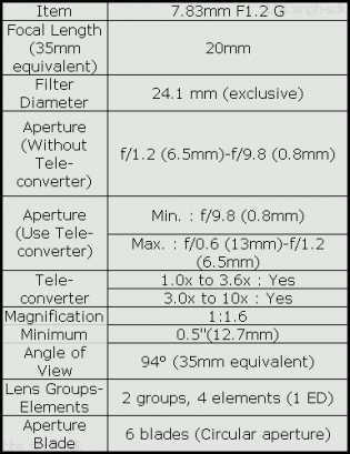 Le notizie che circolano in merito ad essi (parliamo di sensori curvi CMOS) sono davvero scarse e le uniche poche informazioni che siamo in grado di proporvi riguardano le caratteristiche tecniche: di fatto stiamo parlando di sensori da 22.1 megapixel dotati di ottiche G Lens (già molto famose) da 7.83mm e f/1.2; lunghezza focale di 20mm, spessore del sensore Cmos curvo di 6 mm.