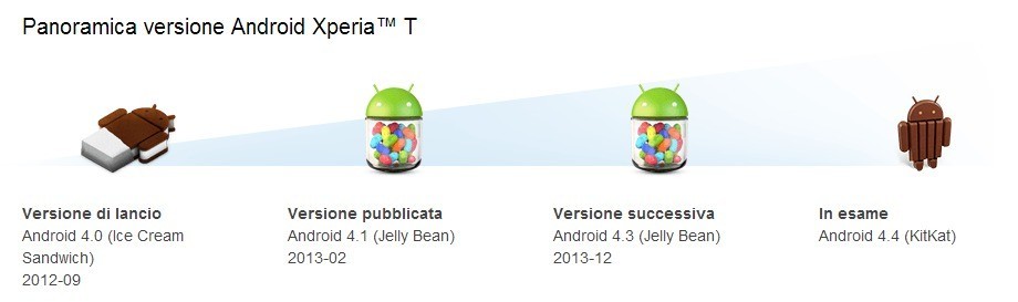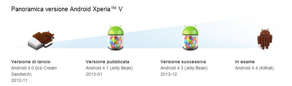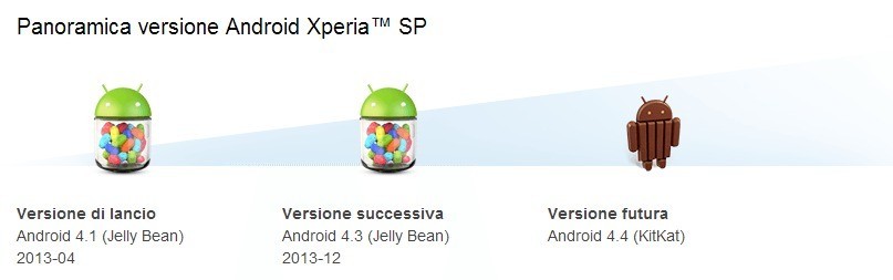Nella pagina di supporto infatti arrivano conferme del fatto che Sony stia lavorando per capire quali dispositivi sono in grado di supportare il nuovo sistema operativo Android e controllando le varie pagine di supporto dei singoli dispositivi emerge innanzi tutto che l‘Xperia SP riceverà sicuramente l’aggiornamento, mentre si è in fase di test per Xperia ZR, Xperia T, Xperia TX e Xperia V, il che lascia molte speranze ai proprietari di questi device.