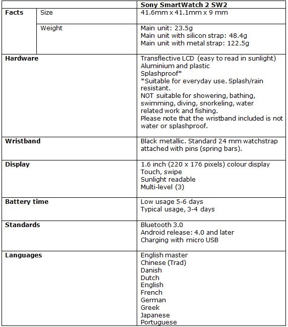 SmartWatch 2 introduce nuove funzionalità all’attuale Sony SmartWatch come la connettività NFC per le funzioni one-touch, un design di alto livello e una serie di tecnologie tra cui una maggiore risoluzione per una visualizzazione più nitida, migliore visibilità anche alla luce del sole, una prolungata resistenza della batteria, un’interfaccia più intuitiva, funzionalità orologio autonome e una vasta gamma di applicazioni pre-installate.
