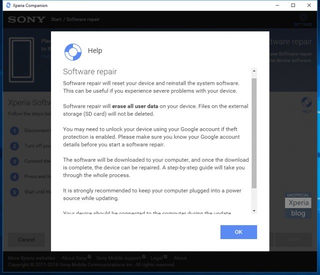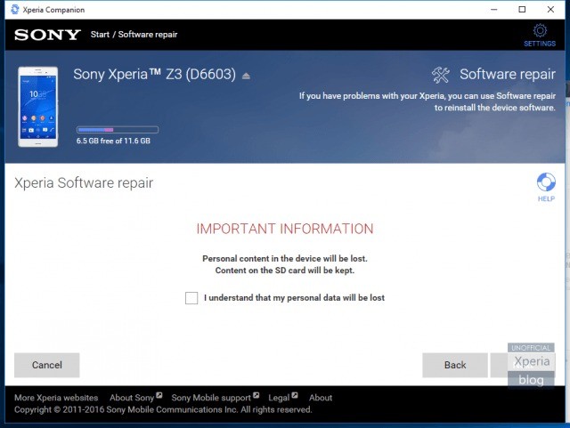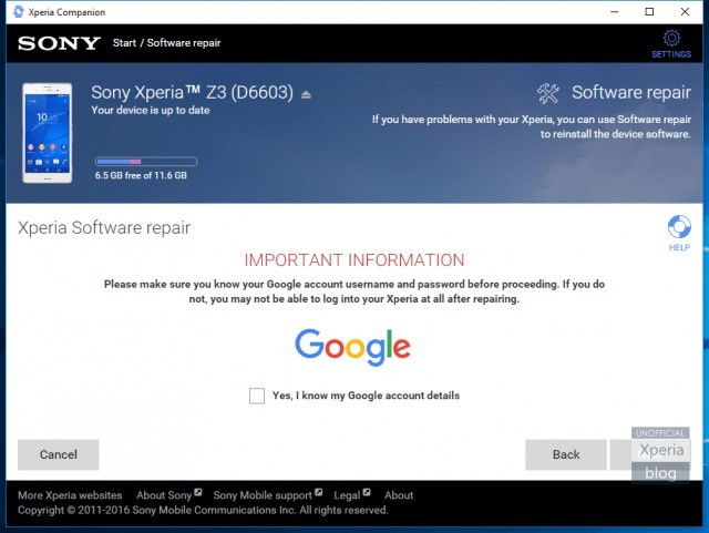 Sony, inoltre, ricorda di attivare il riconoscimento automatico dell’account Google in modo tale da garantirsi un normale accesso al telefono in special modo per le funzioni Anti-Thief legate all’attivazione di MXTP. Per concludere verrete avvertiti del fatto che ogni contenuto del vostro device verrà perduto, è questo quindi il momento di fare il backup delle vostre foto, video e documenti che verranno irrimediabilmente persi con la formattazione ed il successivo installa del sistema operativo. Viene avviato, quindi, il processo di installazione: