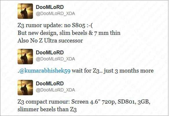 Lo sviluppatore, alcune ore fa, si è lasciato andare con tutta una serie di tweet anticipando nuove indiscrezioni sul prossimo Sony Xperia Z3 e svelando per la prima volta anche un’ipotetico Sony Xperia Z3 Compact.