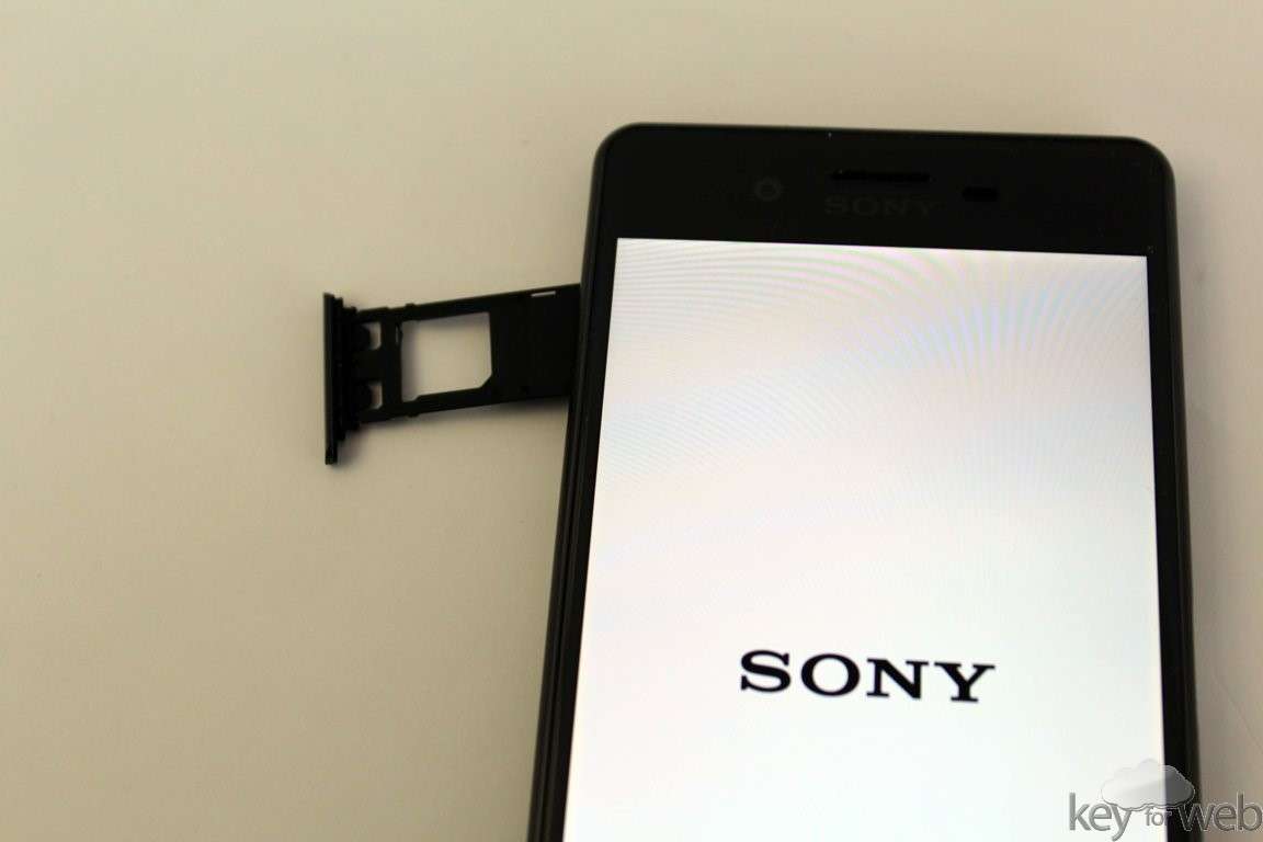 Continuando con l’analisi del device, sempre sul retro abbiamo la scritta Xperia in bassorilevo, la fotocamera principale ed il singolo LED Flash, mentre sul fronte abbiamo i due altoparlanti e la camera anteriore, oltre che il display da 5 pollici ed i sensori di luminosità e prossimità. Il LED di notifica è presente della griglia altoparlante superiore.