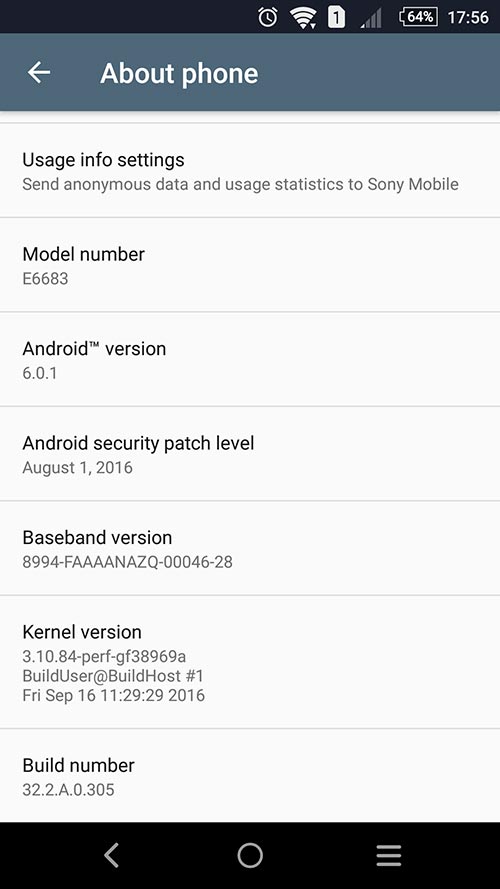 Il colosso nipponico ha infatti avviato le manovre di rilascio del nuovo firmware contrassegnato dal numero di build 32.2.A.0.305, pronto a rimpiazzare l’attuale e più datato 32.2.A.0.253 risalente allo scorso periodo estivo: l’oggetto del contendere concerne, nello specifico, la risoluzione di alcuni bug palesatisi nel corso degli ultimi mesi, con l’unica aggiunta circoscritta al rilascio delle patch di sicurezza Android relativa al mese di agosto (quelle precedenti erano ferme addirittura ad aprile). Non propriamente recentissime, invero, specie se facciamo riferimento a quelle di ottobre già implementate da OnePlus (OnePlus 3 e OnePlus X) e BlackBerry (BlackBerry Priv e BlackBerry DTEK50).