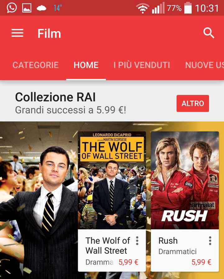 Grazie a questo accordo, i film che saranno distribuiti da Rai Cinema saranno valutati da un team di esperti per valutarne l’idoneità delle policy di Google e successivamente potranno essere noleggiati o acquistati direttamente sul Google Play, nella sezione Film, dove troveremo un’apposita sezione chiamata Collezione Rai