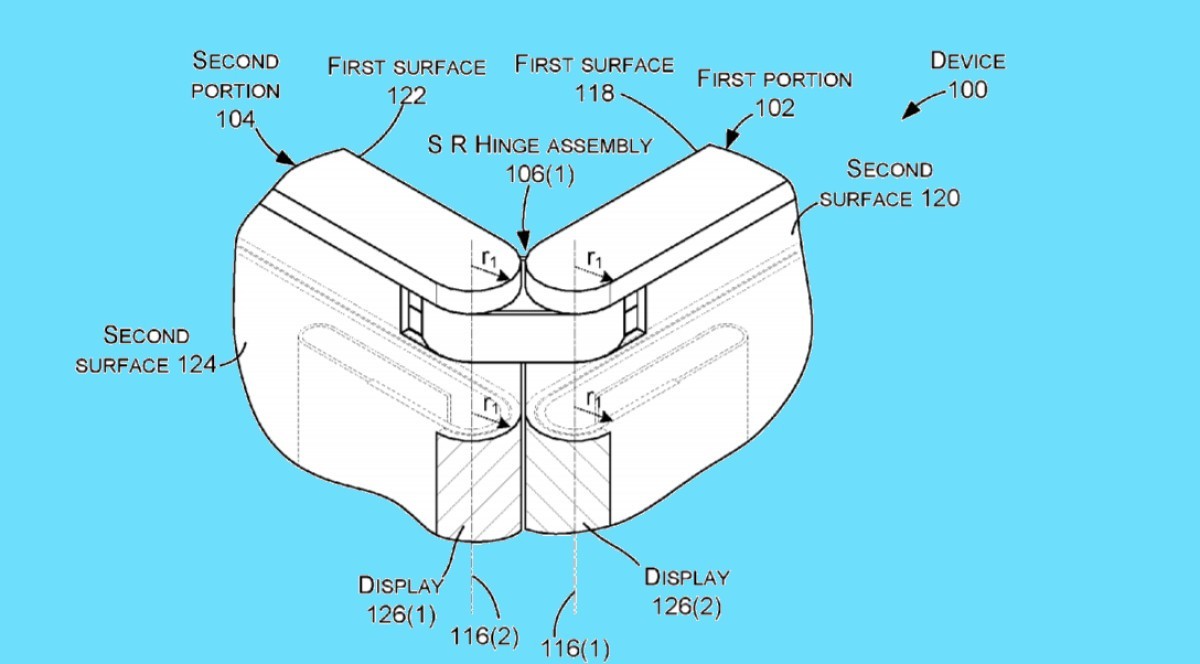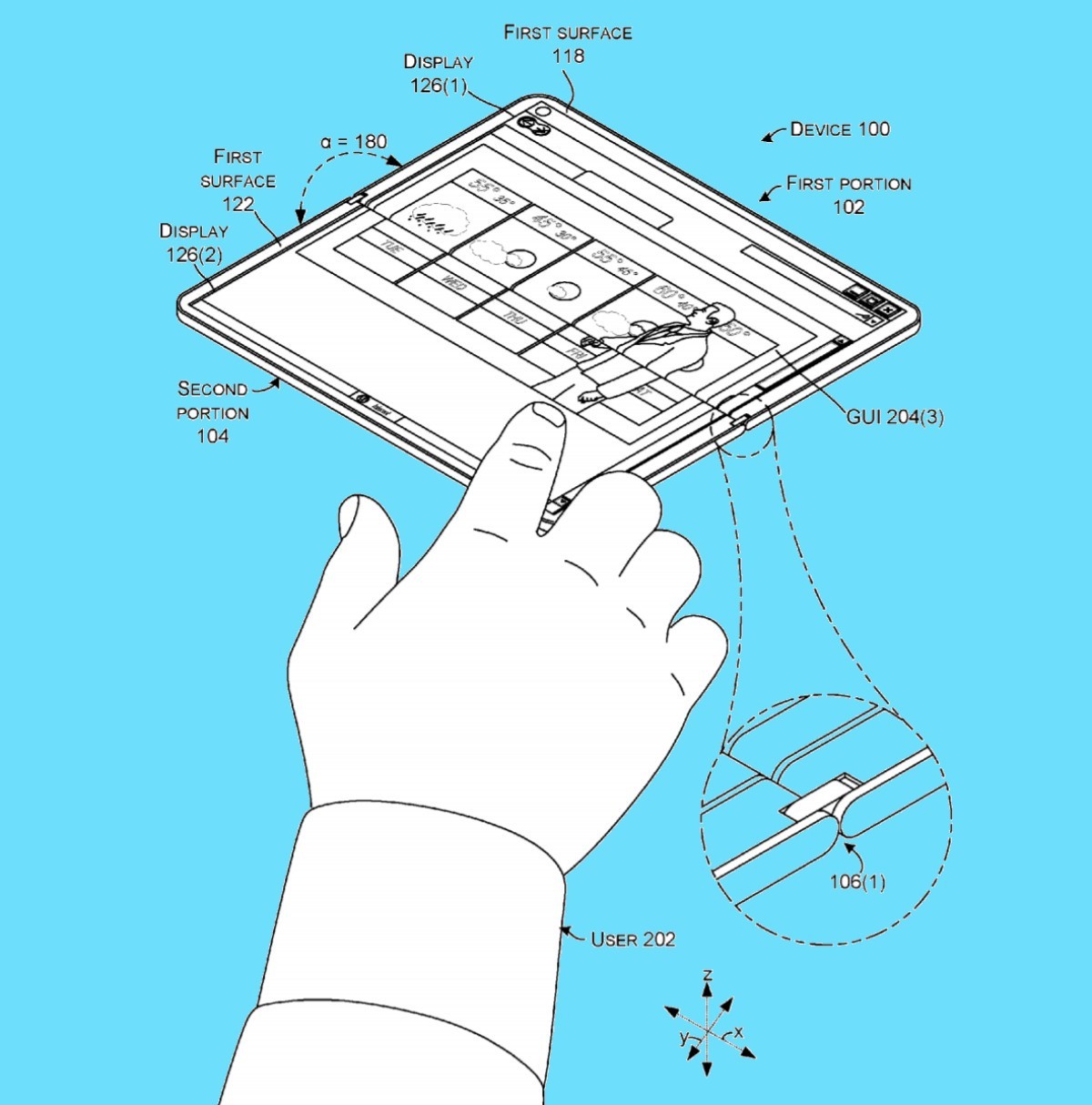 Siamo in presenza di una particolare cerniera che collega la seconda superficie (Surface) alla prima nel contesto di un dispositivo pieghevole a doppio display touch. Grazie a questa cerniera brevettata il dispositivo potrebbe essere posizionato in varie modalità di uso riprendendo sostanzialmente quanto già accade con la serie Yoga di Lenovo.