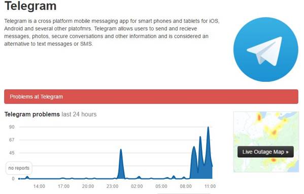 Dalla mezzanotte di ieri e questa mattina, prima dalle 8 alle 9 circa ed ora dalle 10 fino a questo momento, Telegram sta subendo diversi disservizi, soprattutto in Spagna, Danimarca, Nord Italia ed altri Paesi del vecchio continente, costringendo la società fondata dal russo Pavel Durov nel 2013, e vero diretto concorrente di colossi del calibro di WhatsApp, Messenger, Snapchat ha rilasciare, ironia della sorte proprio su Twitter, su comunicato ufficiale confermando il problema.