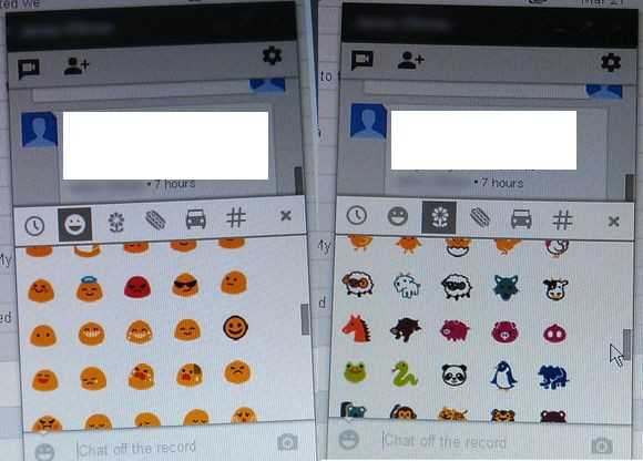 Gli Screenshot suggeriscono anche la condivisione di foto all’interno del programma, con un login Google+ obbligatoria, una funzione per poter impostare un Hangout. Le emojis Google+ sono in un formato più piccolo, e ce ne sono di nuove che non si sono viste prima in un prodotto Google. E ‘chiaro che tutto questo sarebbe legittimo se il prodotto fosse costruito attorno a Google+.