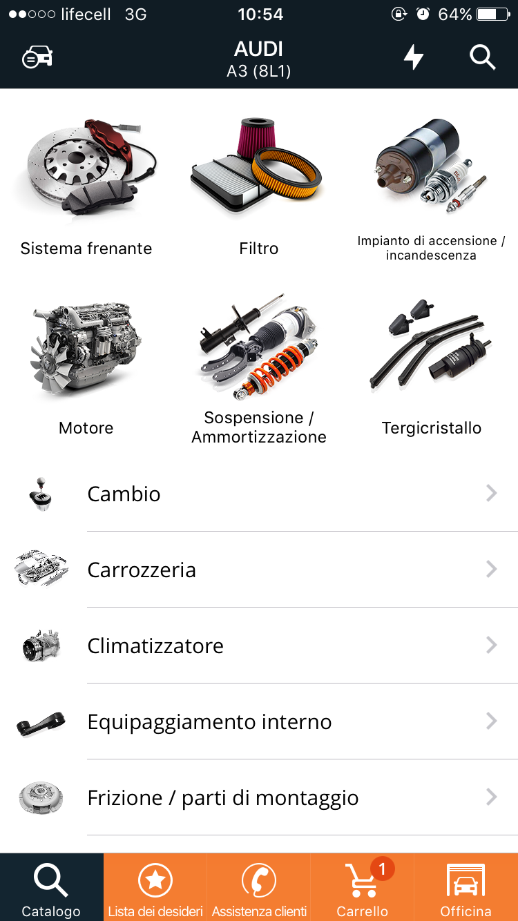 - Possibilità di salvare qualsiasi pezzo di ricambio nella lista dei desideri