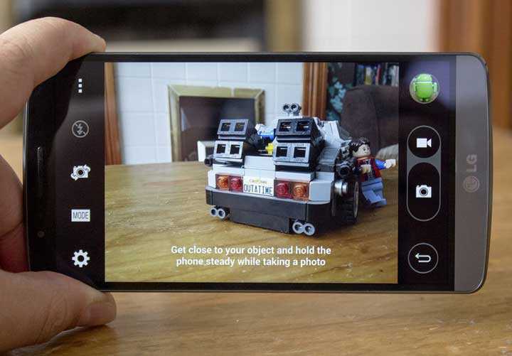 La fotocamera dell’LG G3 consente di scegliere tra diverse modalità di scatto, che troverete dietro al tasto “modo” a fianco alla ruota dentata. L’opzione “Dual” offre uno scatto stile immagine-dentro-l’immagine grazie all’uso di entrambe le fotocamere, “Panorama” permette di scattare foto molto estese, “Magic Focus” vi farà scegliere il punto esatto – all’interno di una foto – da mettere a fuoco e “Auto” naturalmente farà ogni cosa al vostro posto.