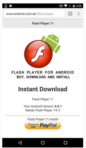 Una volta scaricata l’app, si apriva un finto tutorial che spiegava all’utente come completare l’installazione di Flash Player sul dispositivo Android; si veniva poi indirizzati su una pagina PayPal sulla quale l’utente ignaro inseriva i dettagli della propria carta di credito per ottenere l’aggiornamento.