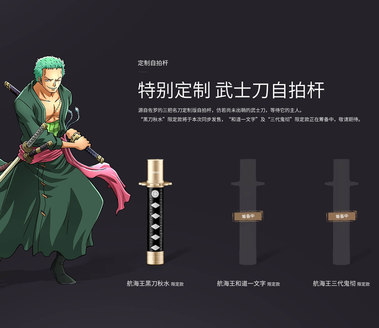 Meizu M6 Note One Piece Edition sarà in vendita al prezzo di 1.699 yuan (circa 249€) per la versione da 3GB di RAM e 32GB di memoria interna e 2.399 yuan (circa 349€) per la variante da 4GB di RAM e 64GB di storage interno. L’azienda cinese rilascerà anche tre bastoni selfie personalizzati con le impugnature delle spade di Zoro (uno dei personaggi della serie).
