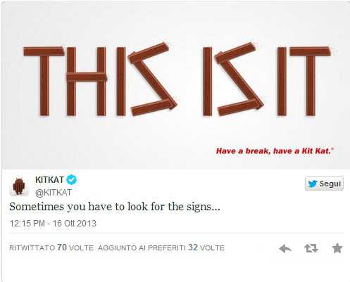 Da poche ore però KitKat continua a “cantare” su Twitter ed ecco cosa appare: