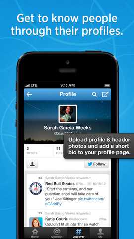Altra novità introdotta è la funzione ‘Scopri‘ che contiene un unico flusso di Tweet, Tendenze, Attività e account da seguire.