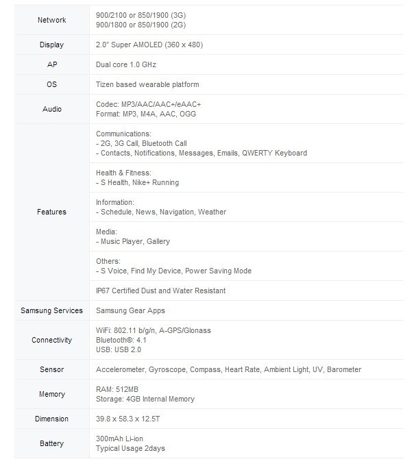 Ecco alcune specifiche tecniche del nuovo Samsung Gear S: