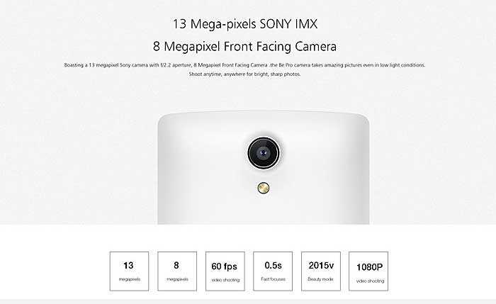 Grazie alla potente fotocamera da 13 Megapixel con sensore SONY potrete catturare tutti i migliori momenti della vostra vita; oltre ad ottime fotografie sarete in grado di girare anche video a 1080p per poterli rivederli e condividere con gli amici più cari.