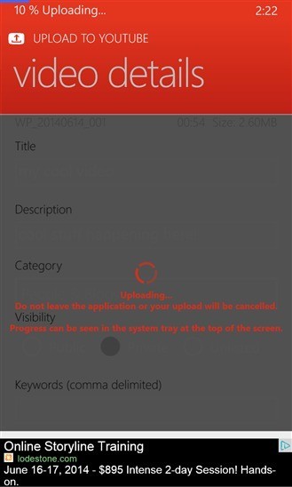 Il primo uploader di YouTube per Windows Phone 8.1 è arrivato. Upload to Youtube è stato reso disponibile nel Windows Phone market in versione gratuita. Il nome dell’applicazione parla da solo e tramite il vostro smartphone, targato Microsoft, ora potrete condividere su Youtube i vostri video presenti nel rullino fotografico caricandoli direttamente da smartphone sul vostro canale video sociale. Sarà sufficiente selezionare il video che si desidera caricare dal vostro rullino fotografico, scegliere “Share” e selezionare “Carica su YouTube” e il gioco è fatto!