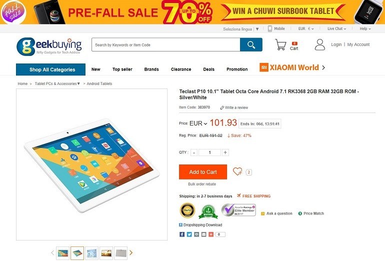 - Teclast P10 Android 7.1 Tablet disponibile a 101.93€ con un risparmio del 47% sul prezzo ufficiale.