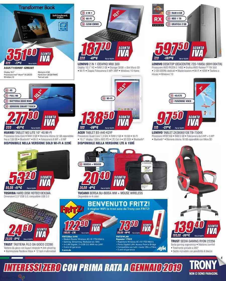 Tanti altri prodotti sono presenti all’interno del volantino Trony  e prima di lasciarvi vi consigliamo anche di dare uno sguardo all’area elettrodomestici e in pagina 5 e 6, dove troverete molti oggetti interessanti come il fitbit versa, il Playstation VR o le fotocamere Reflex. iPer scoprire tutte le promozioni del nuovo volantino Trony basta seguire questo link.