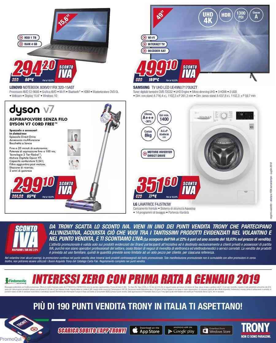 Tanti altri prodotti sono presenti all’interno del volantino Trony  e prima di lasciarvi vi consigliamo anche di dare uno sguardo all’area elettrodomestici e in pagina 5 e 6, dove troverete molti oggetti interessanti come il fitbit versa, il Playstation VR o le fotocamere Reflex. iPer scoprire tutte le promozioni del nuovo volantino Trony basta seguire questo link.